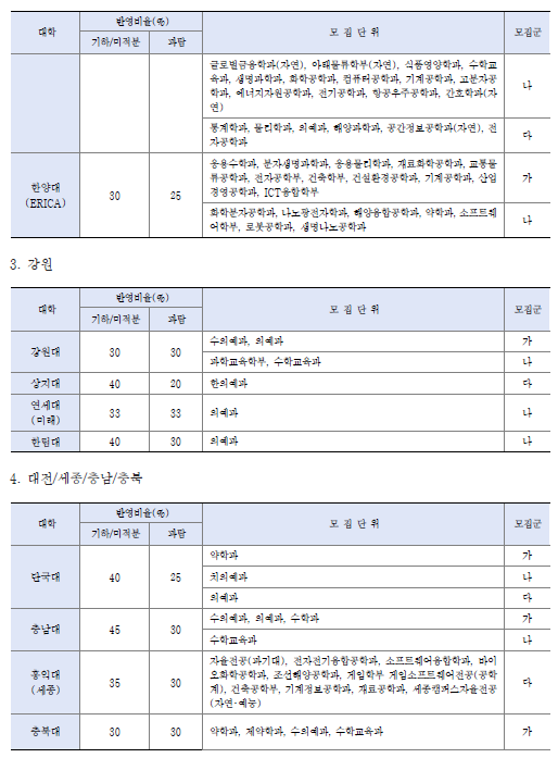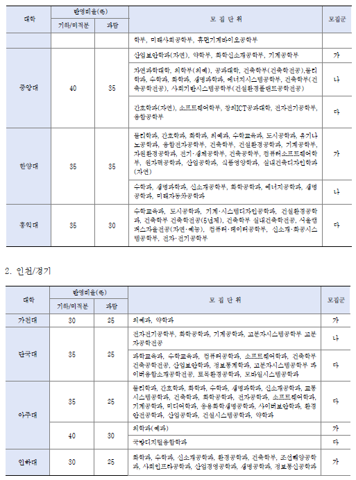 1. 미적분/ 기하 + 과탐 필수 반영 대학