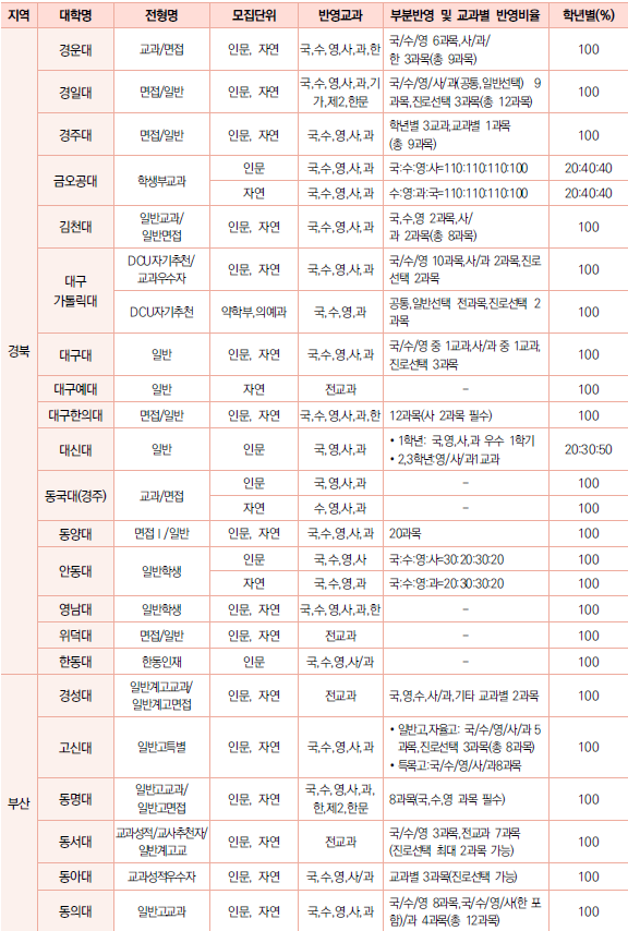 | 2022학년도 수시 학생부교과전형 모집인원 및 전형방법 - 전국일반대학 (0) | 2021.04.02 |