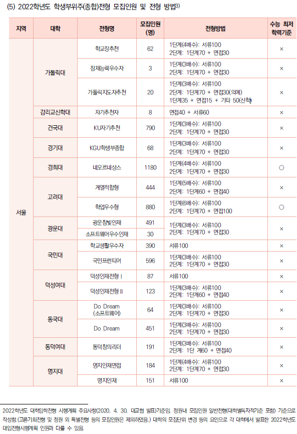 | 2022학년도 학생부종합전형 수도권 대학별 제출서류 (0) | 2021.04.27 |