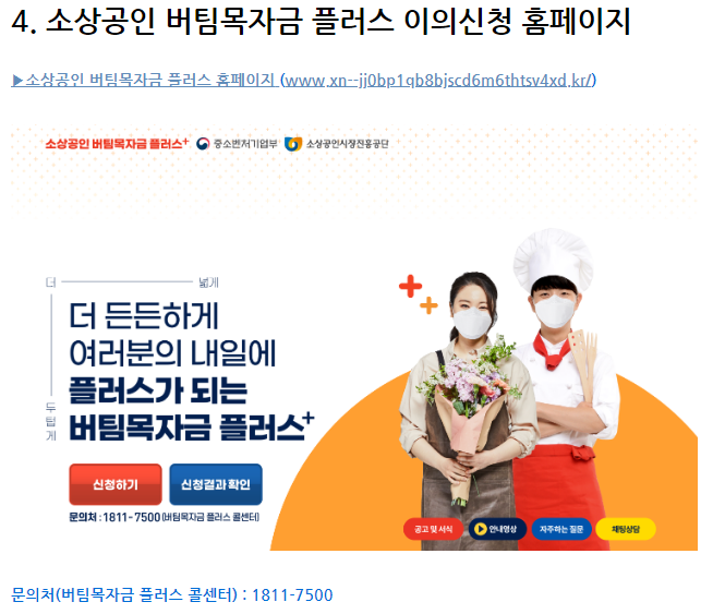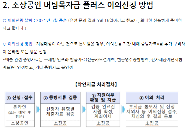 ☞ [소상공인 버팀목자금 플러스] 시행공고 및 이의신청 안내문 :