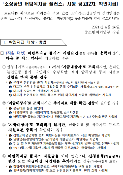 | 4차 재난지원금 '버팀목자금플러스' 시작 (0) | 2021.03.29 |