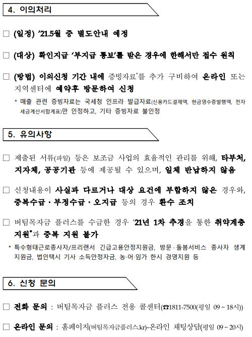 | 4차 재난지원금 - 버팀목자금 플러스 명단에 없을 때 이의신청 (0) | 2021.04.09 |