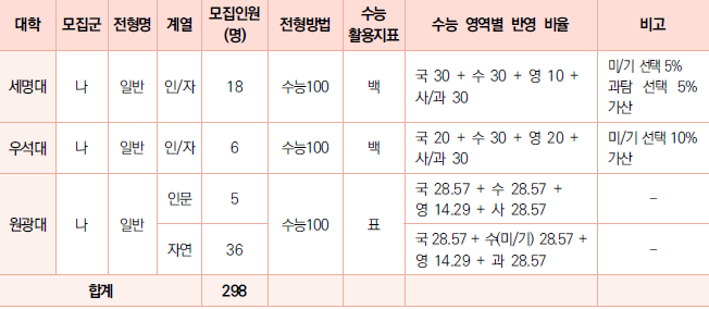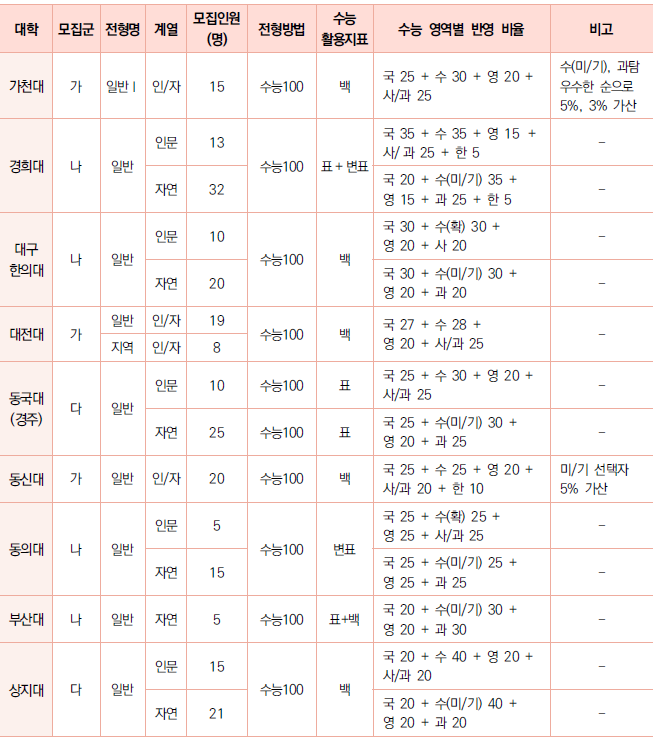 □ 한의예과 정시 일반전형(인문계열-문과 /자연계열-이과)