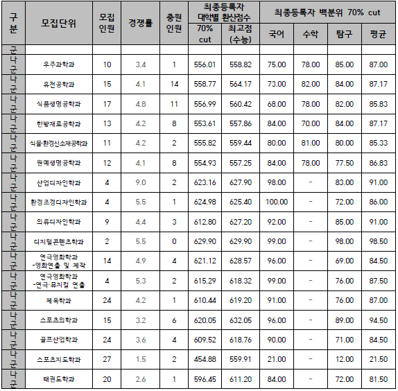 | 경상대학교 입시결과 - 수시등급. 정시 커트라인 (0) | 2021.05.31 |