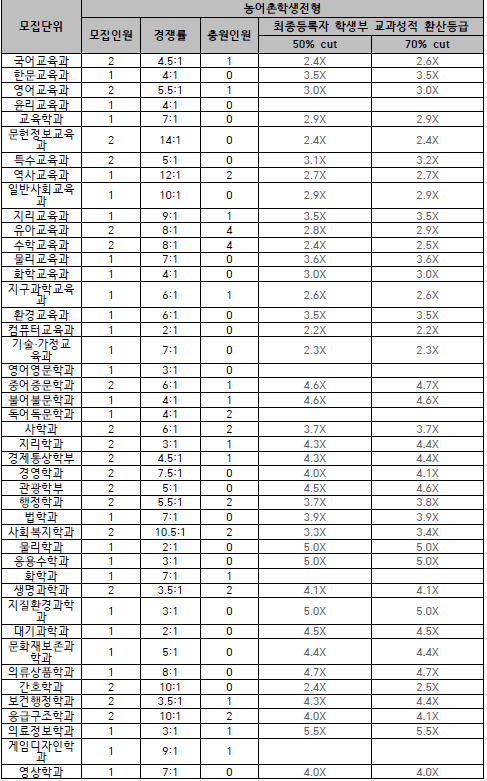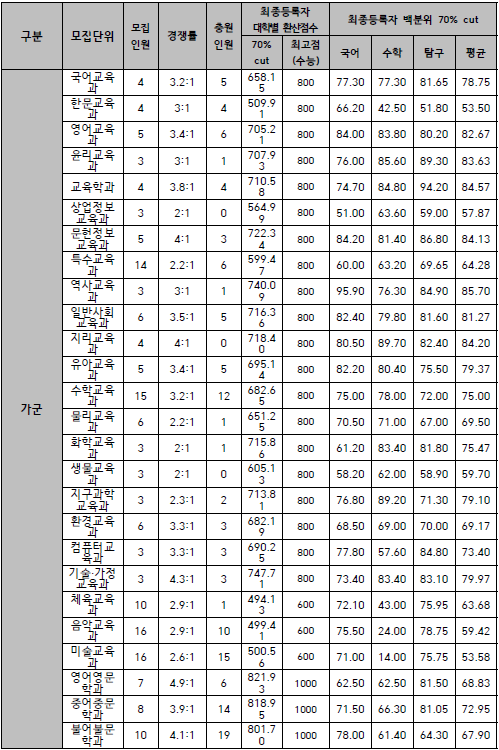 | 광주교육대학교(광주교대) 입시결과 - 수시등급. 정시 커트라인 (0) | 2021.06.03 |
