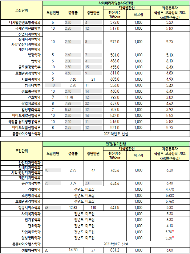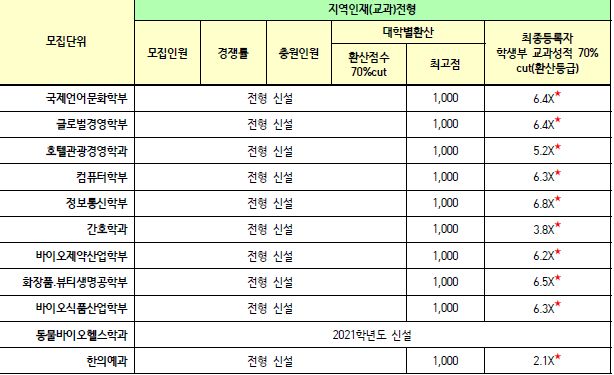 | 세종대학교 입시결과 - 수시등급. 정시 커트라인 (0) | 2021.06.14 |