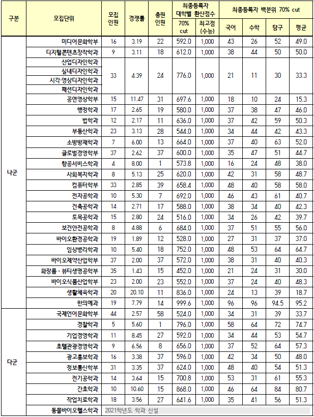 | 성신여자대학교 입시결과 - 수시등급. 정시 커트라인 (0) | 2021.06.14 |
