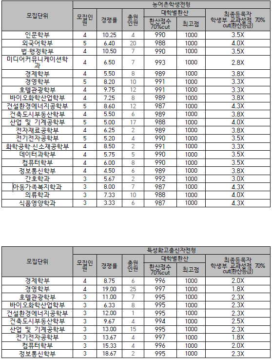 | 세종대학교 입시결과 - 수시등급. 정시 커트라인 (0) | 2021.06.14 |