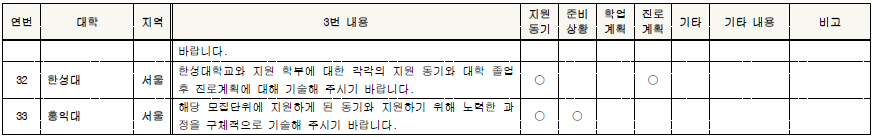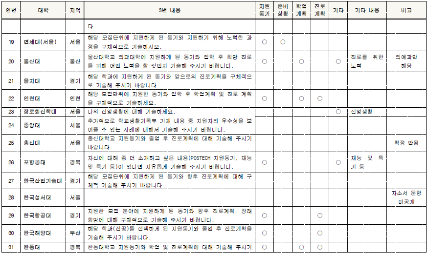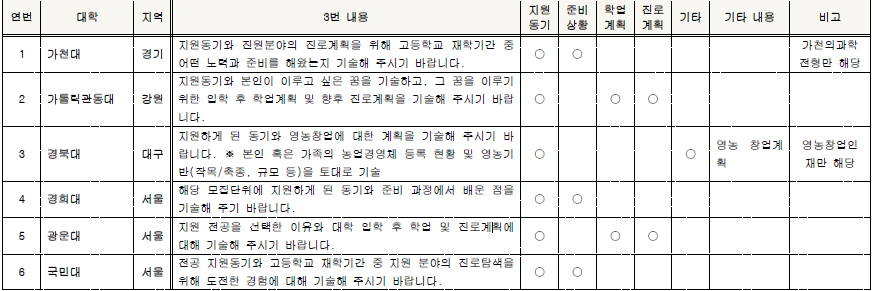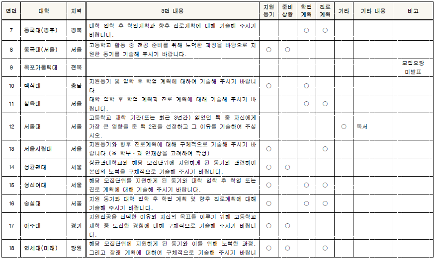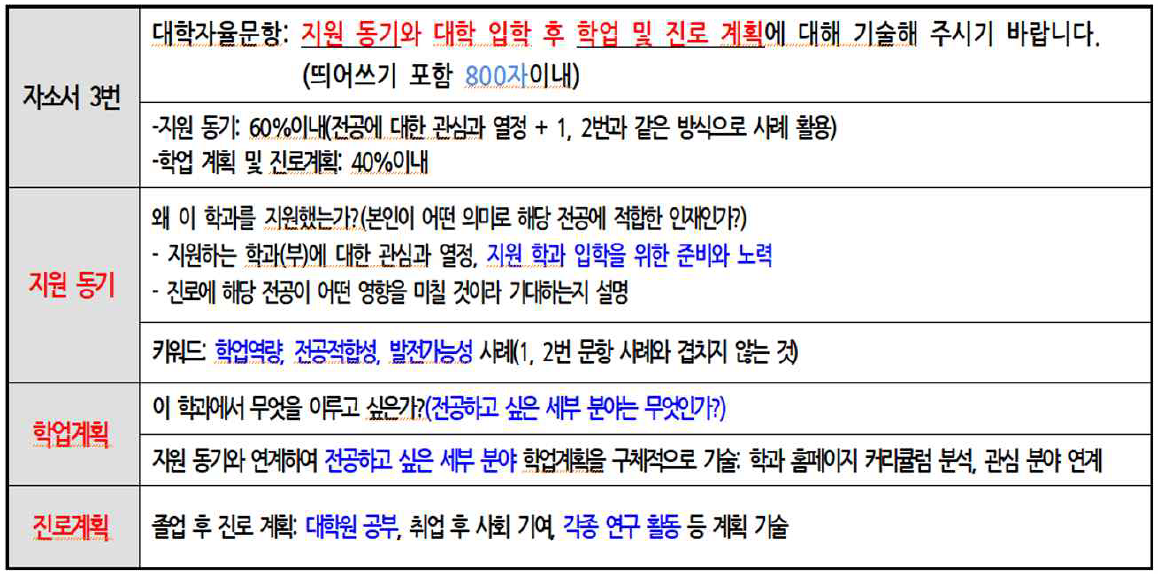 □ 2022학년도 학생부종합전형 대학별 자기소개서 3번 문항