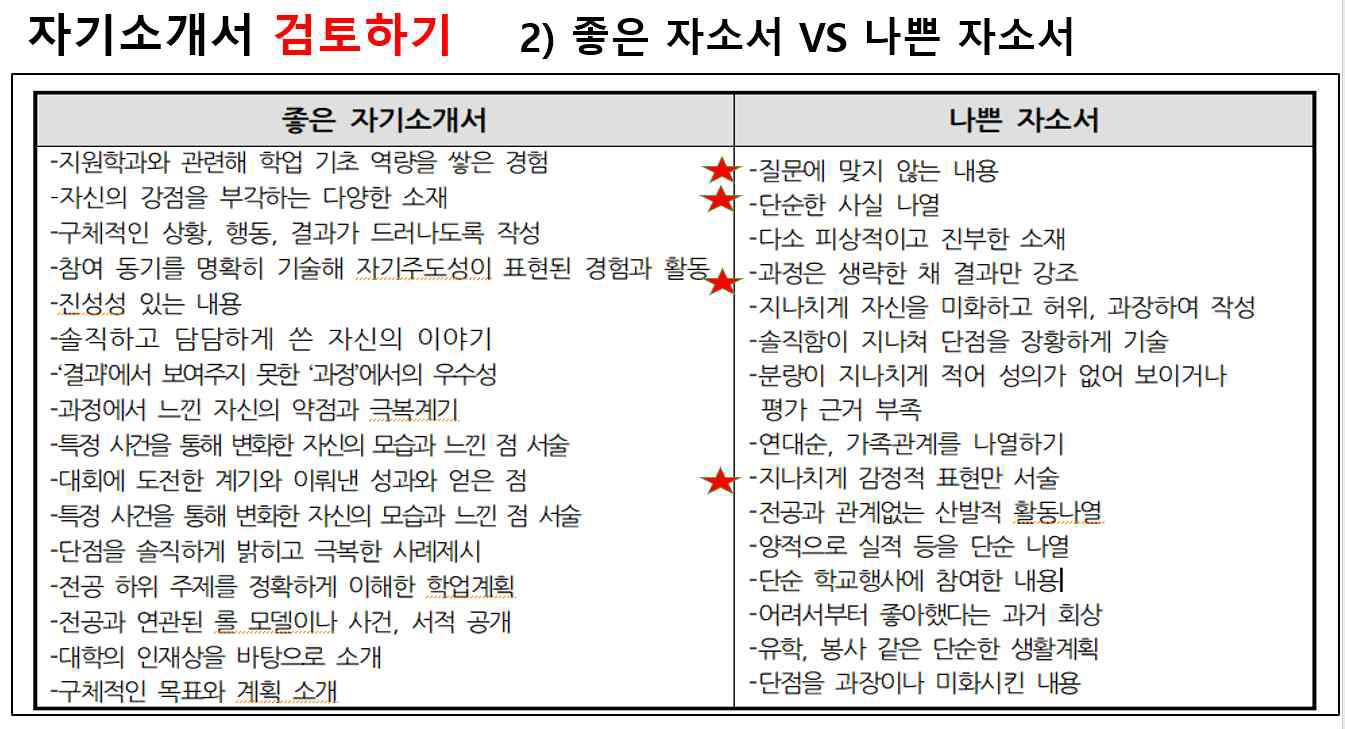 ⑤ 주의할 점은. 부모나 친인척의 사회적, 경제적 지위를 암시하는 내용을 언급하는 것은 금지사항입니다.