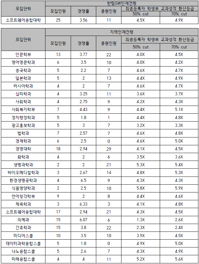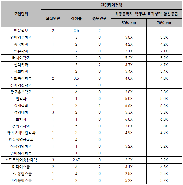 | 한신대학교 입시결과 - 수시등급. 정시 커트라인 (0) | 2021.06.29 |