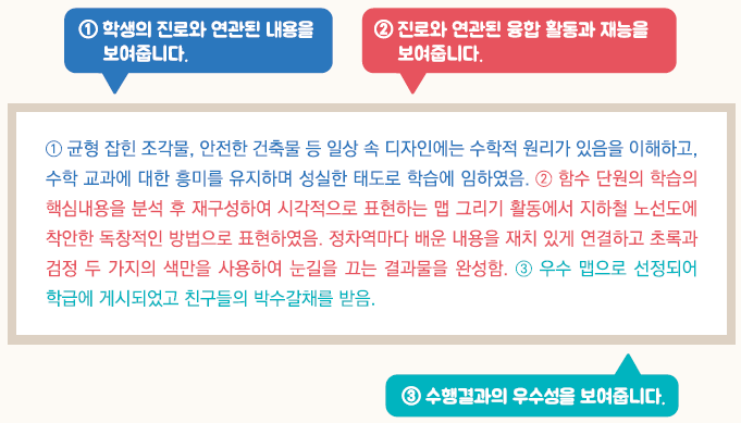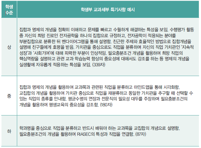 - 학생의 교과 흥미나 관심분야, 적성이나 진로 등