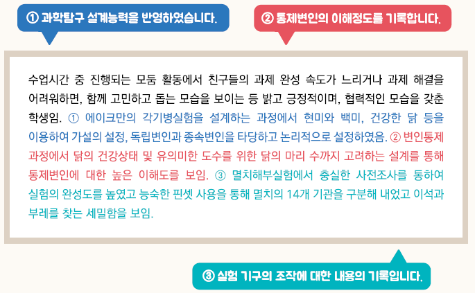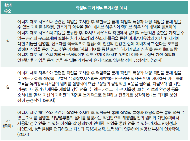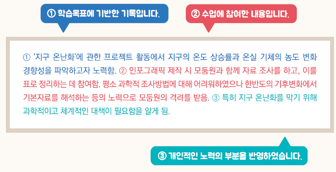 - 학생의 수행평가 결과물 및 과정에 대한 관찰기록을 활용