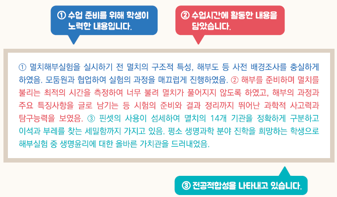 - 학생의 교과 흥미나 관심분야, 적성이나 진로 등