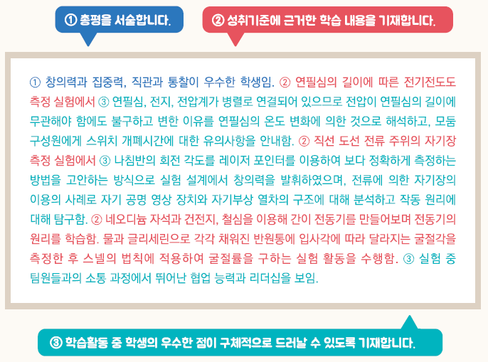 - 학생이 보여준 강점, 약점을 극복하기 위한 노력 등