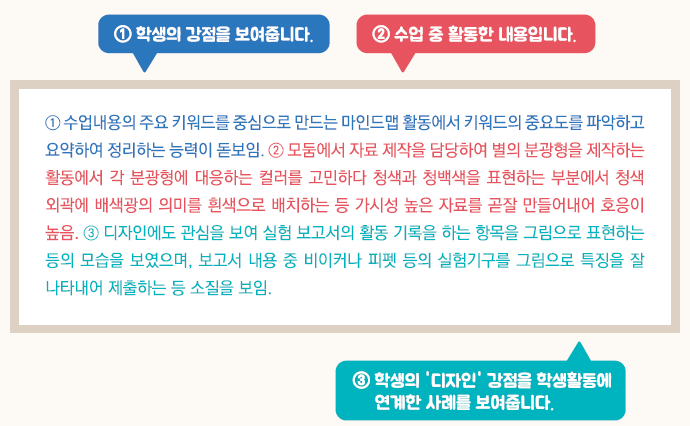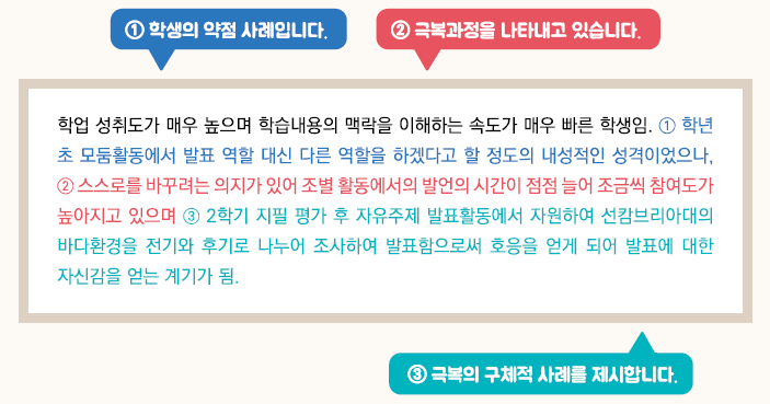 - 학생이 보여준 강점, 약점을 극복하기 위한 노력 등
