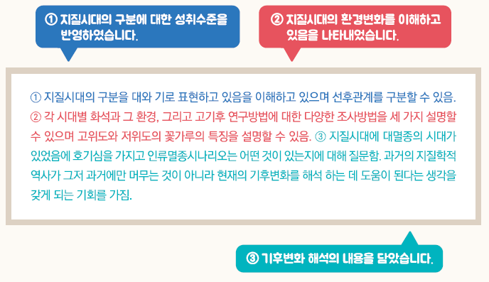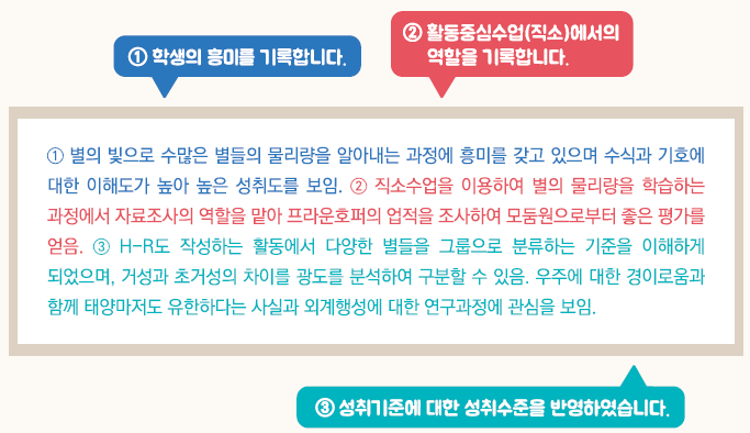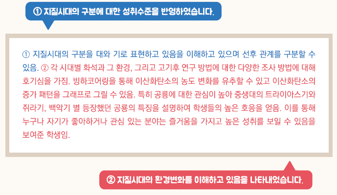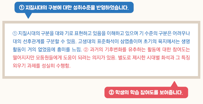 - 교육과정 성취기준과 평가기준에 기반한 학생의 학업 내용 및 성취수준 등