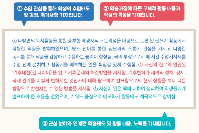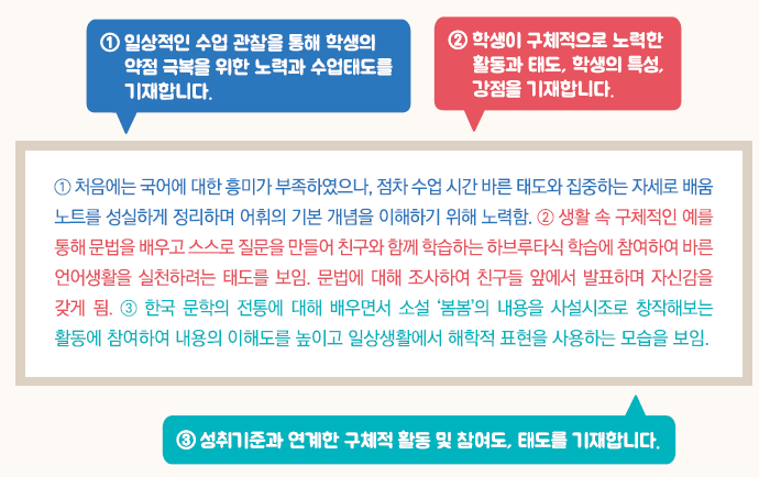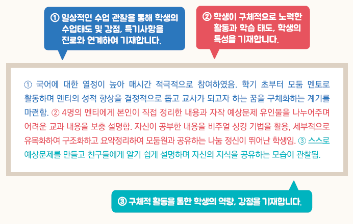 - 학생이 보여준 강점, 약점을 극복하기 위한 노력 등