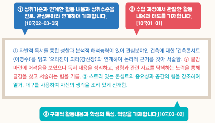 - 학생의 수행평가 결과물 및 과정에 대한 관찰기록을 활용