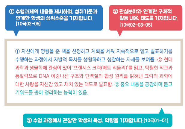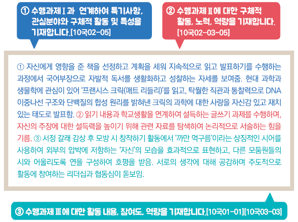 | 생명과학Ⅱ(2) 세부능력 및 특기사항(세특) 예시 (0) | 2021.07.15 |