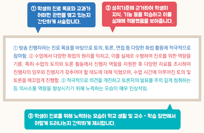 - 학생의 교과 흥미나 관심분야, 적성이나 진로 등