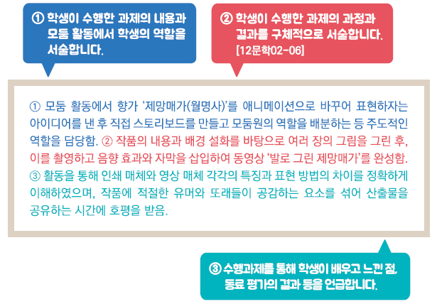 - 학생의 수행평가 결과물 및 과정에 대한 관찰기록을 활용