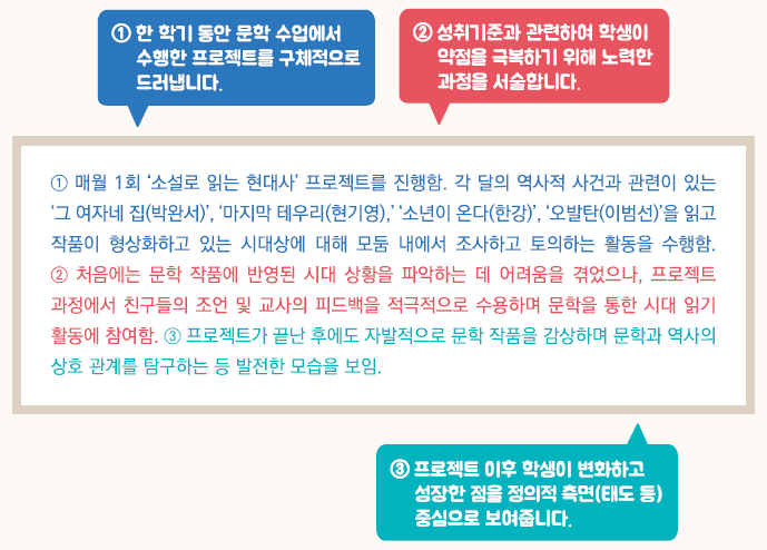 - 학생이 보여준 강점, 약점을 극복하기 위한 노력 등