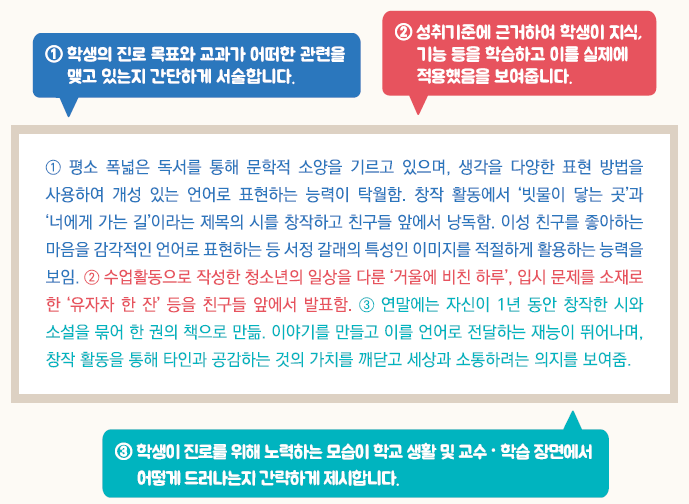 - 학생의 교과 흥미나 관심분야, 적성이나 진로 등