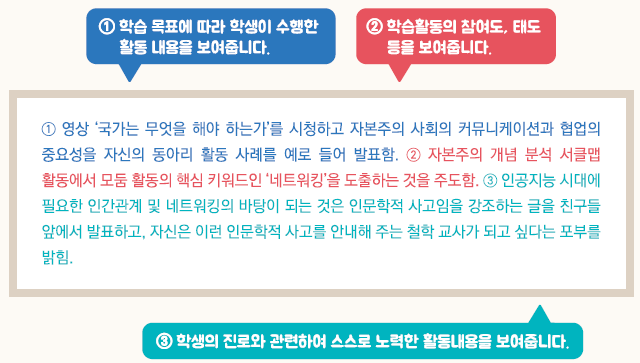 - 학습 과정을 통한 학생의 변화와 성장, 자기 성찰 등