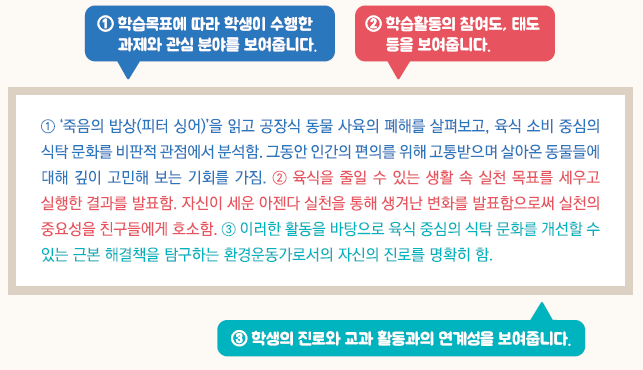 - 학생의 교과 흥미나 관심분야, 적성이나 진로 등