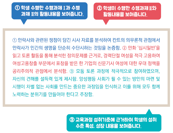 - 학생의 수행평가 결과물 및 과정에 대한 관찰기록을 활용