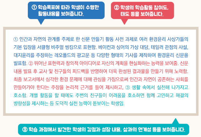- 학습 과정을 통한 학생의 변화와 성장, 자기 성찰 등