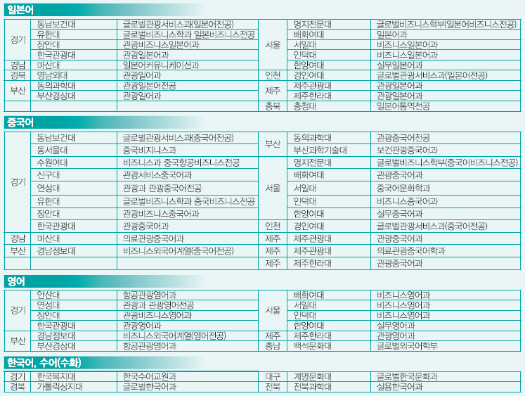 □ 언어계열(일본어, 중국어, 영어, 학국어, 수어(수화))