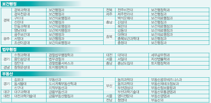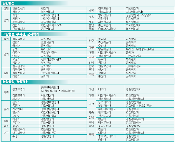 □ 행정/사회일반(행정, 부사관,군사학,경찰행정,소방, 보건, 부동산)