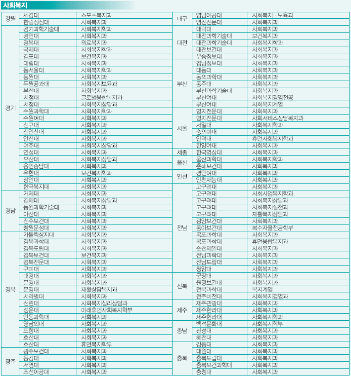 □ 사회복지/상담(사회복지,아동.청소년지도상담, 노인, 장례)
