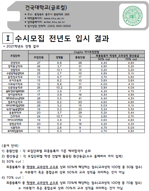 | 건국대학교 2021학년도 입시결과-수시등급. 정시 커트라인 (0) | 2021.08.02 |