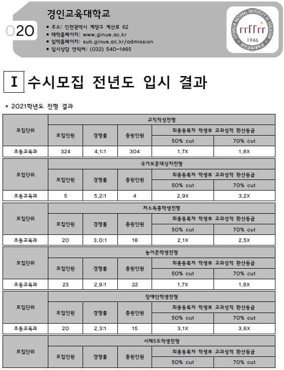 | 경운대학교 2021학년도 입시결과-수시등급. 정시 커트라인 (0) | 2021.08.02 |