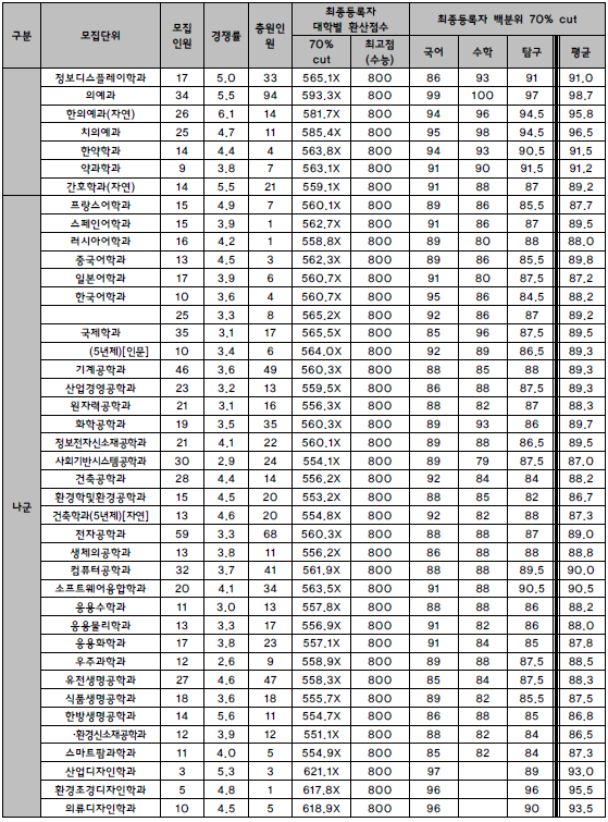 | 고려대학교 2021학년도 입시결과-수시등급. 정시 커트라인 (0) | 2021.08.02 |