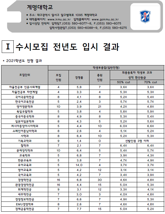 | 경일대학교 2021학년도 입시결과-수시등급. 정시 커트라인 (0) | 2021.08.02 |