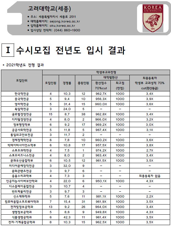| 고려대학교 2021학년도 입시결과-수시등급. 정시 커트라인 (0) | 2021.08.02 |