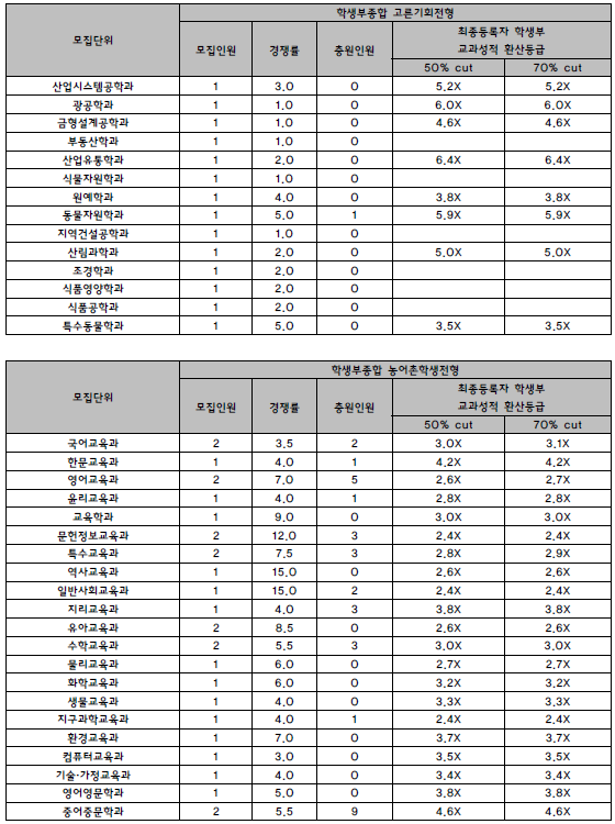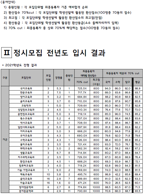 | 광주교육대학교(광주교대) 2021학년도 입시결과-수시등급. 정시 커트라인 (0) | 2021.08.02 |