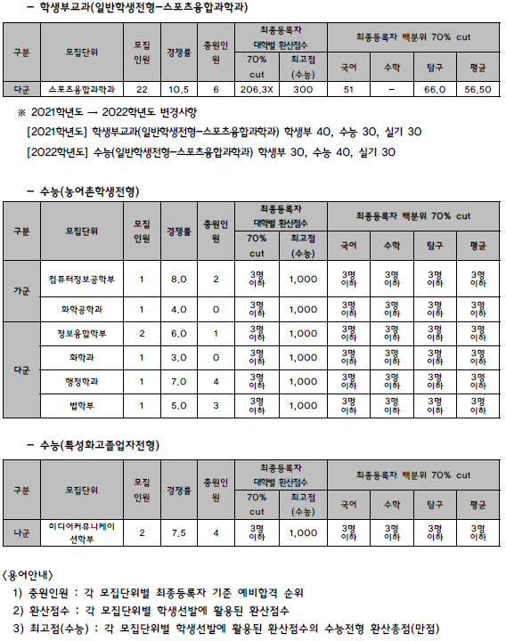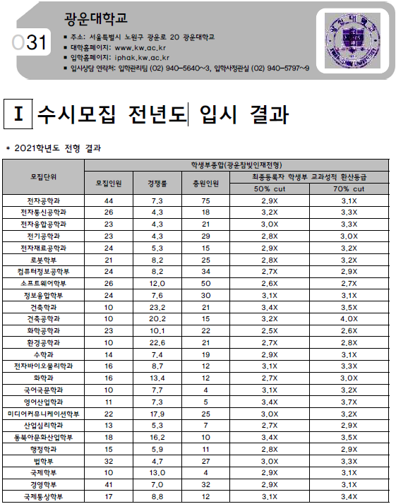 | 광주대학교 2021학년도 입시결과-수시등급. 정시 커트라인 (0) | 2021.08.02 |