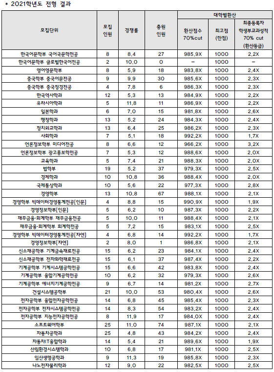 | 금오공과대학교(금오공대) 2021학년도 입시결과-수시등급. 정시 커트라인 (0) | 2021.08.02 |