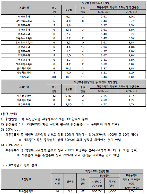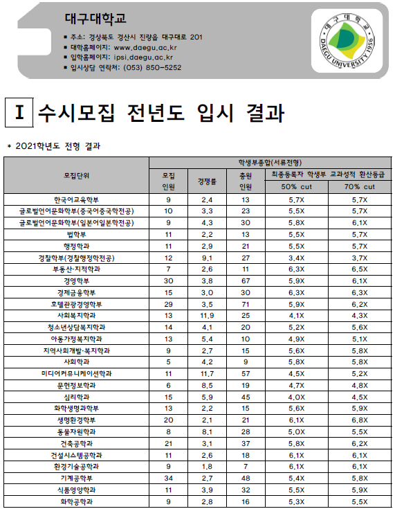 | 대구교육대학교(대구교대) 2021학년도 입시결과-수시등급. 정시 커트라인 (0) | 2021.08.03 |