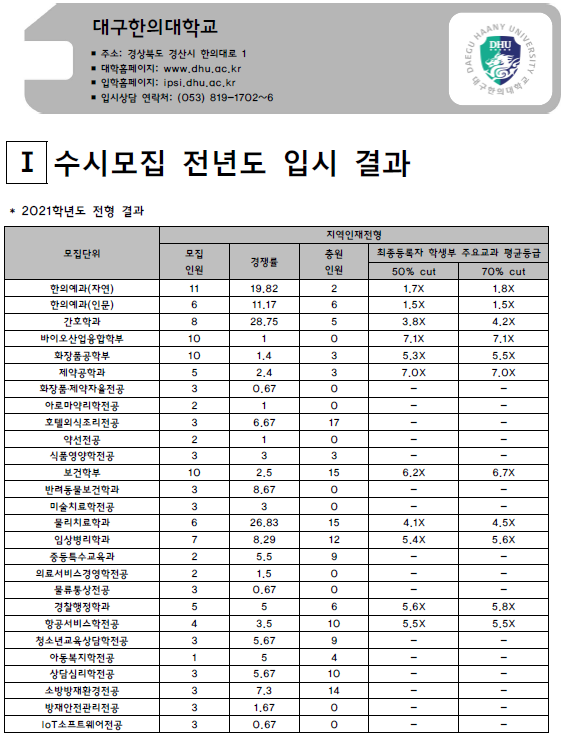 | 대구대학교 2021학년도 입시결과-수시등급. 정시 커트라인 (0) | 2021.08.03 |