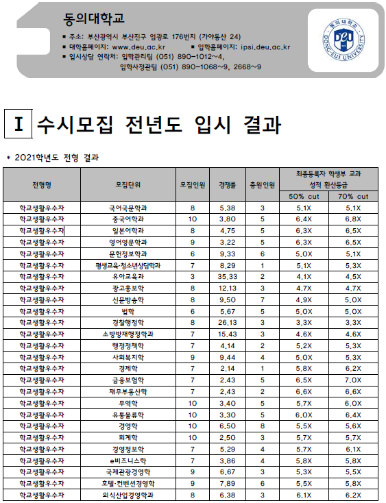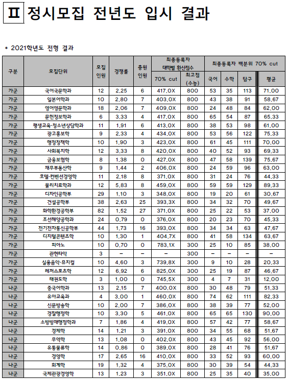 | 동덕여자대학교 2021학년도 입시결과-수시등급. 정시 커트라인 (0) | 2021.08.03 |
