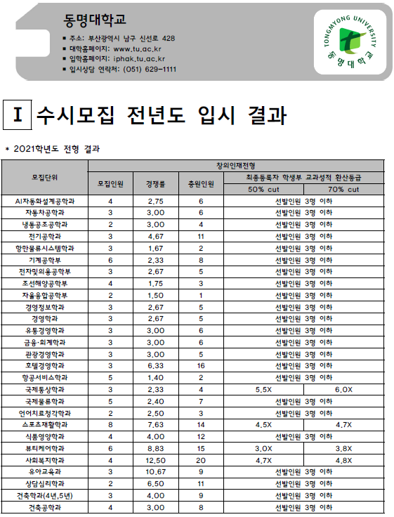 | 동명대학교 2021학년도 입시결과-수시등급. 정시 커트라인 (0) | 2021.08.03 |
