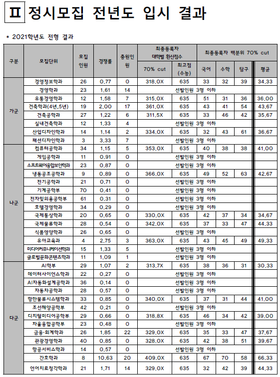 | 동아대학교 2021학년도 입시결과-수시등급. 정시 커트라인 (0) | 2021.08.03 |