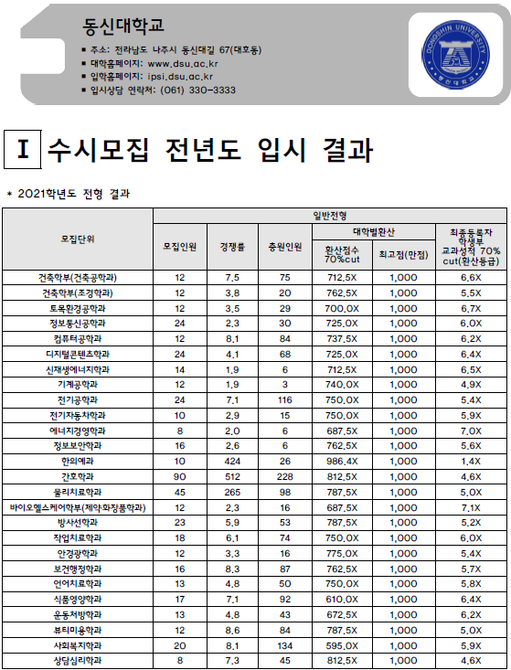 | 동명대학교 2021학년도 입시결과-수시등급. 정시 커트라인 (0) | 2021.08.03 |