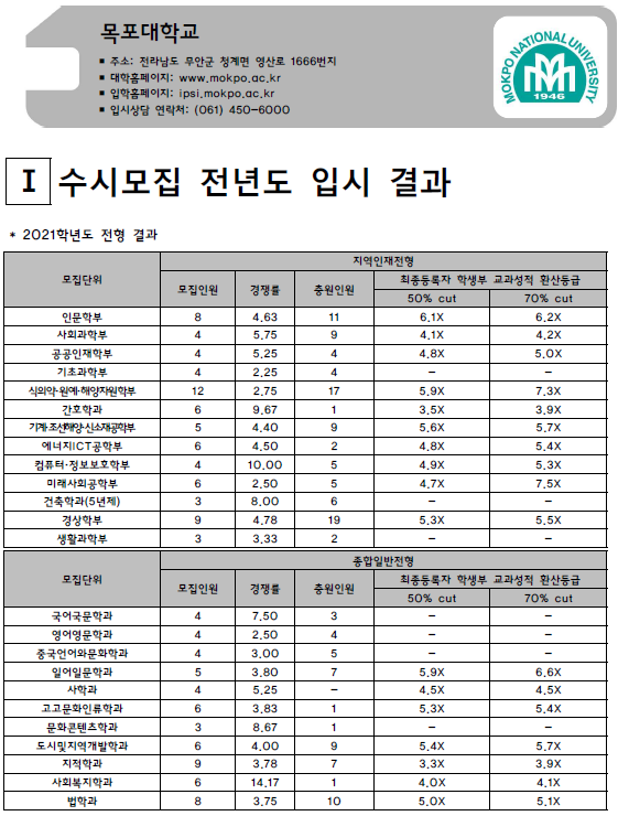| 목포해양대학교 2021학년도 입시결과-수시등급. 정시 커트라인 (0) | 2021.08.03 |